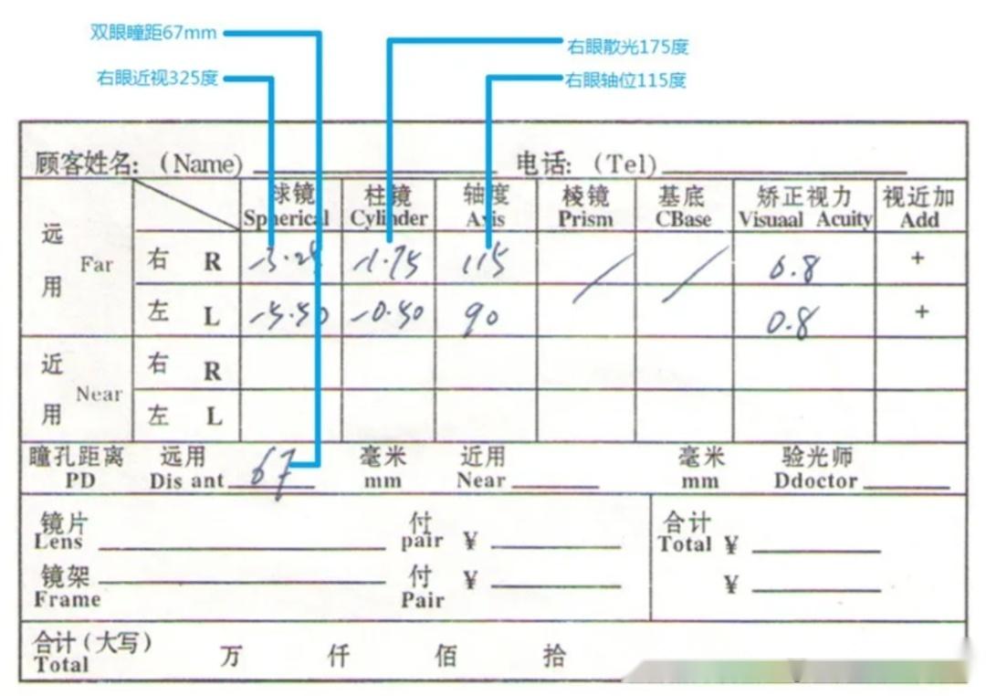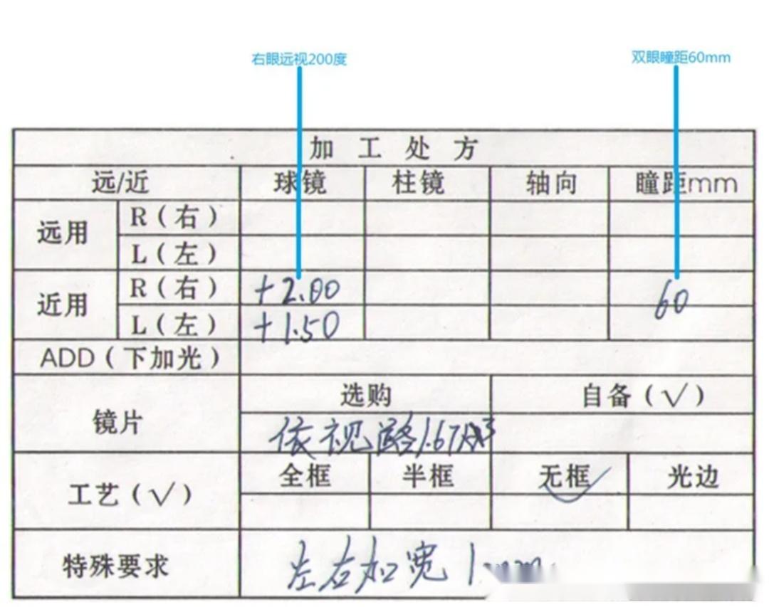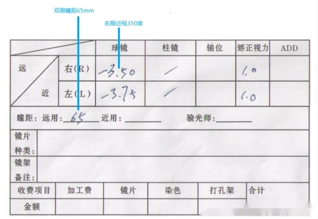 近视+散光(医院手写处方样式)