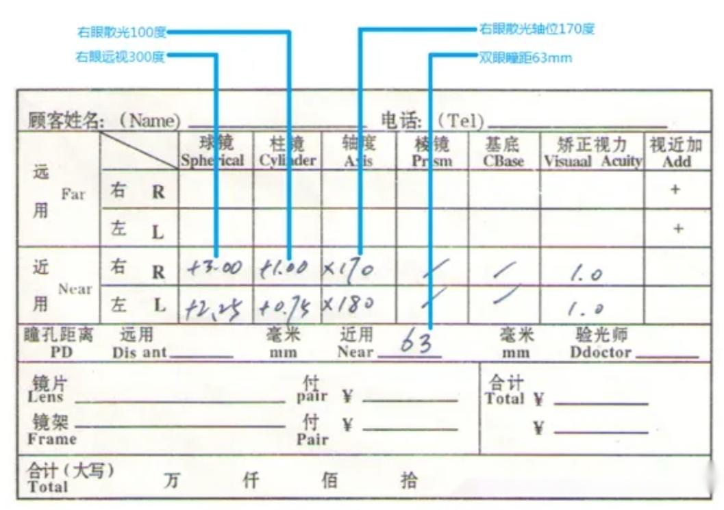 渐进多焦点(眼镜店验光单)
