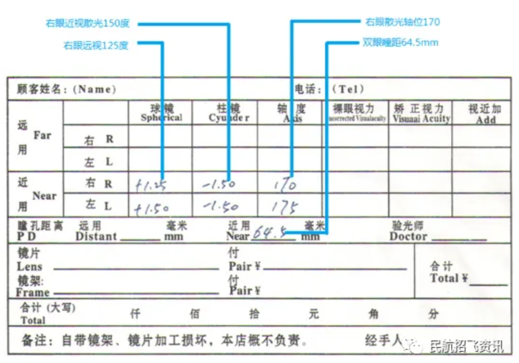 如何读懂初检表上验光单?怎样的验光单符合民航招飞要求
