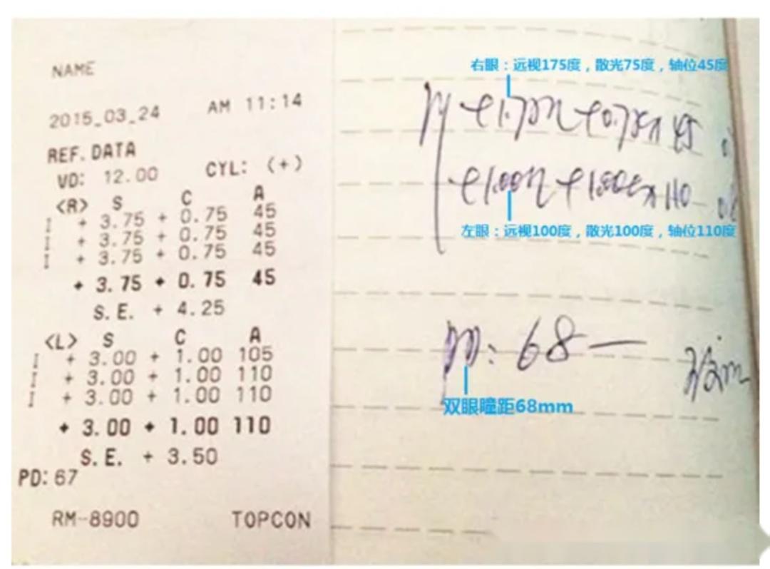 弱视(眼镜店验光单)